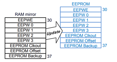 通常の書込みに加えて、ミラーRAM→EEPROMへの書込み動作が必要になります。