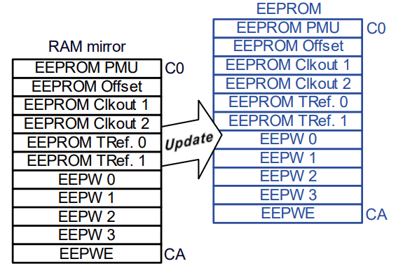 通常の書込みに加えて、ミラーRAM→EEPROMへの書込み動作が必要になりますのでご溜意下さい。