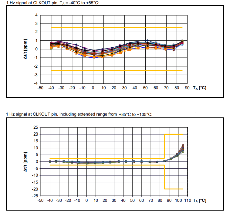 <1Hz及び時刻精度※> ±2.5ppm以内(@-40〜+85℃)